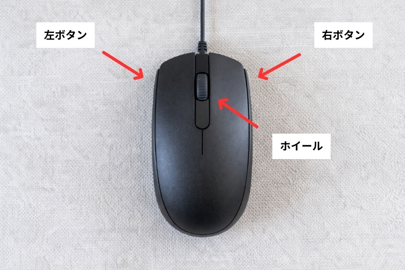一般的なマウスは、左ボタン、右ボタン、ホイールの3つが基本です。