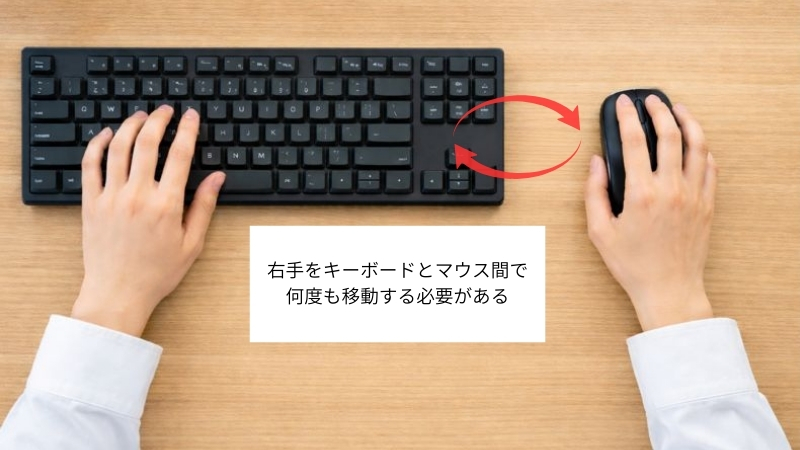 右手をキーボードとマウスの間で何度も移動する作業イメージ