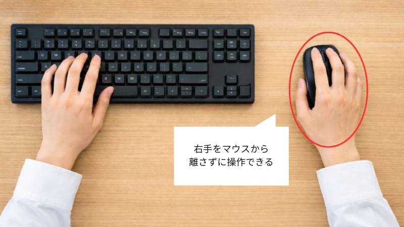 • マウスとキーボード間の手の移動が減り、手首や腕の負担を軽くできる。